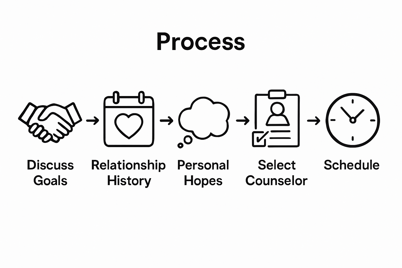 Successful marriage counseling starts with honest communication about your shared and individual goals. Your first task is sitting down together and having an open dialogue about what you each hope to achieve through counseling and in your relationship.