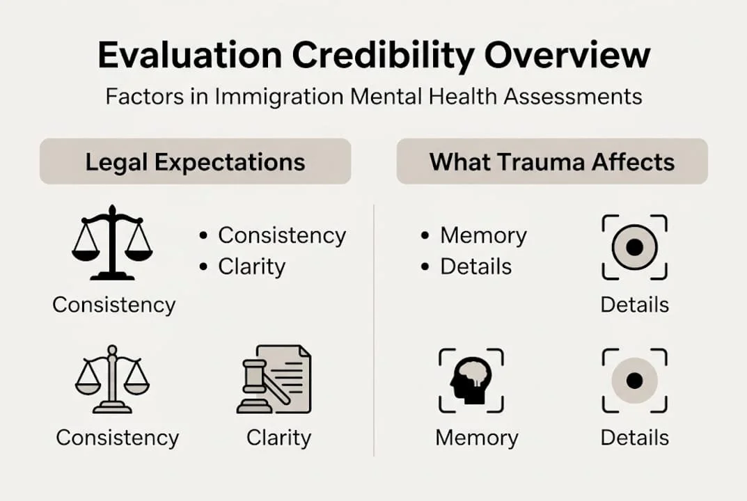 | Dual evaluation roles | Immigration evaluations can cover both medical and trauma-related mental health needs, each with distinct legal purposes. |