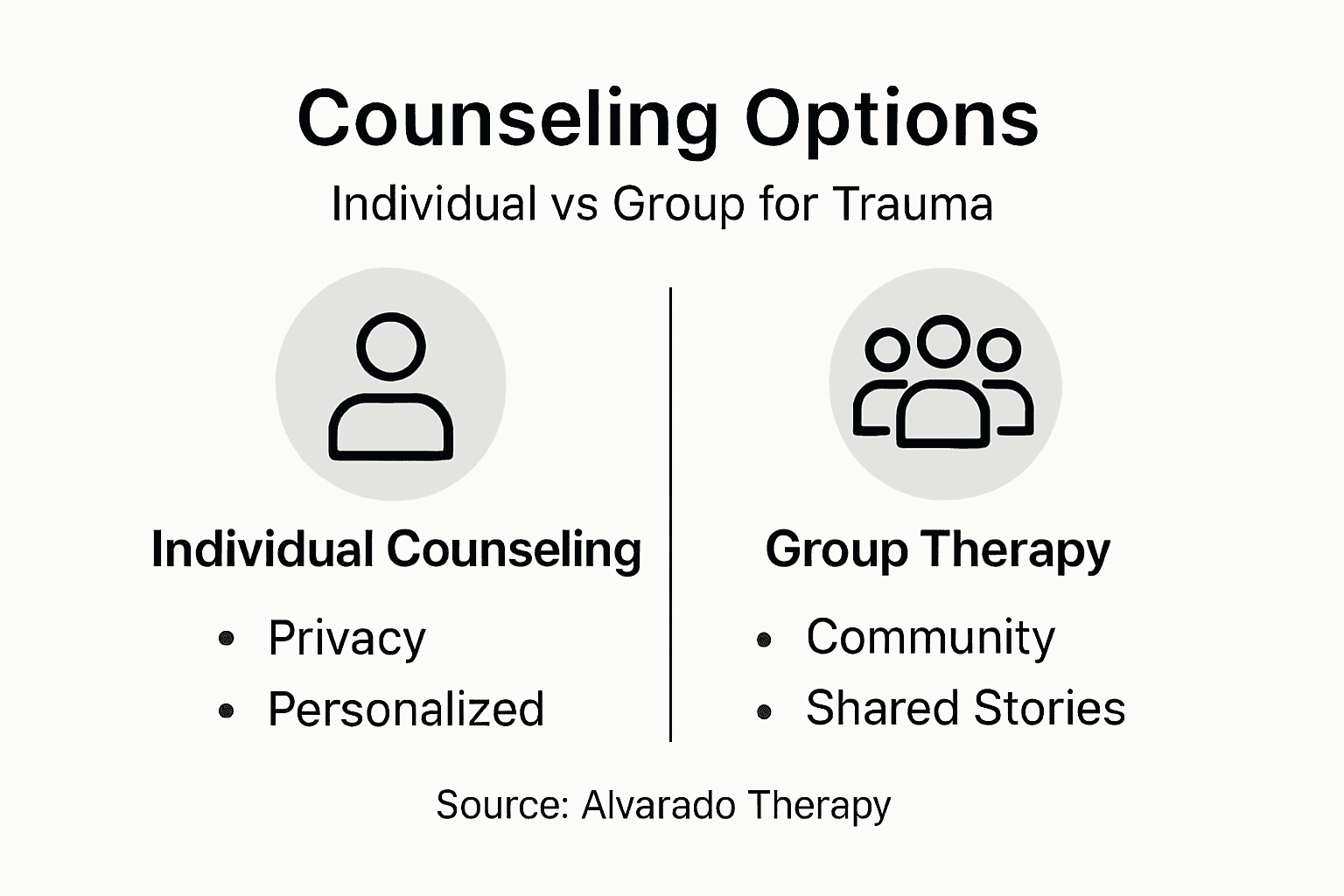 Both individual counseling and group therapy have value, but they serve different purposes in trauma recovery. Understanding the differences helps you choose what works best for your healing right now.