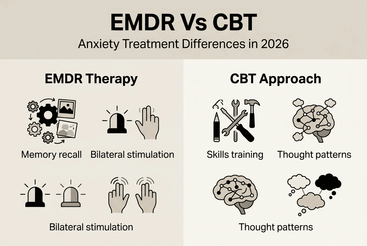 Understanding how EMDR compares to other anxiety treatments helps you make informed decisions about your care. Cognitive behavioral therapy remains the most widely researched and practiced anxiety treatment, making it a natural comparison point. Both approaches have strong evidence bases, but they work through different mechanisms and timelines.